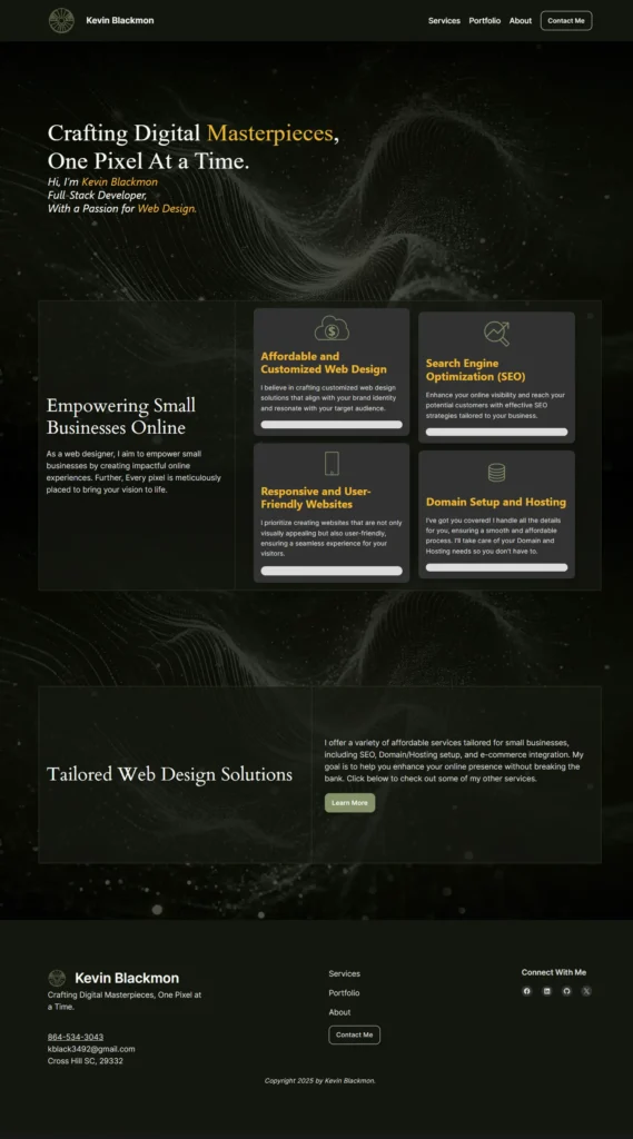 KevinBlackmon.com, a unique portfolio design for a local web designer. This intuitive design helped increase portfolio awareness by 50%.