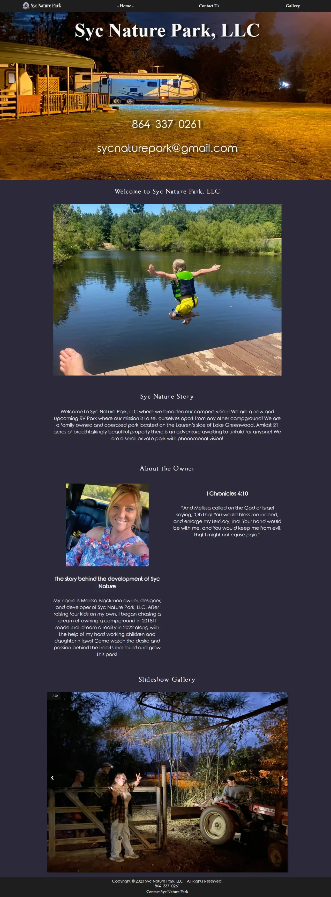 A serene campground located in Cross Hill, SC, where nature meets tranquility. SycNaturePark.com is designed using HTML, CSS, and JavaScript. A unique user-experience that increased park visitors by 45% in less than three months.
